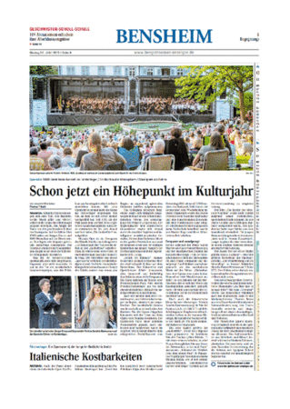 2023 organisierte das Collegium Musicum den Abend. Es sangen der Bensheimer Opernchor, es spielte das Collegium Musicum Bergstraße unter der Leitung von Kushtrim Gashi und Gregor Knop. Cosima Seitz moderierte in charmanter Weise den Abend. Solisten waren Martina Unruh (Sopran) und Thomas Heyer (Tenor)
