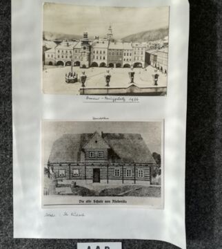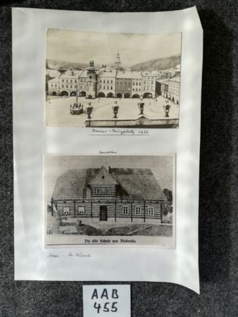 Fotographie SW - "Arnauer-Ringplatz 1966"; Fotokopie SW - eines Gemäldes "Die alte Schule von Niederöls"