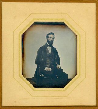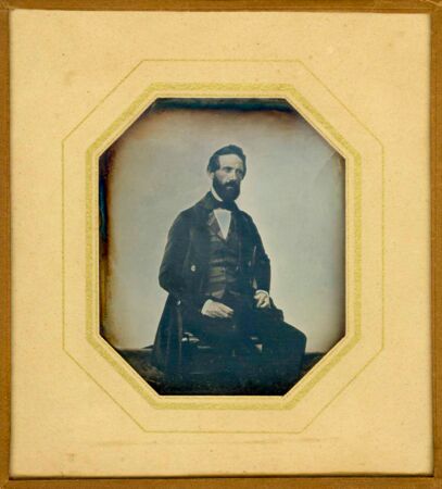 Außerdem eine breit gestreifte Weste, über die auch bei genauem Hinsehen die Kette einer Taschenuhr läuft. Darüber trägt Fries einen langen Gehrock mit breiten Knöpfen. Der Stoff fällt fließend und wirkt samtig. In seiner linken Hand scheint er den Gehrock etwas zusammengerafft zu halten. Bislang ist es noch nicht gelungen, weitere biografische Daten über Dr. Fries herauszufinden.