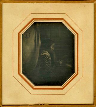 Die Aufnahme aus dem Jahr 1845 zeigt die jüngste Tochter von Johann Wilhelm Debus Emilie. Es ist eine der seltenen Innenaufnahmen in der Villa in Debus.