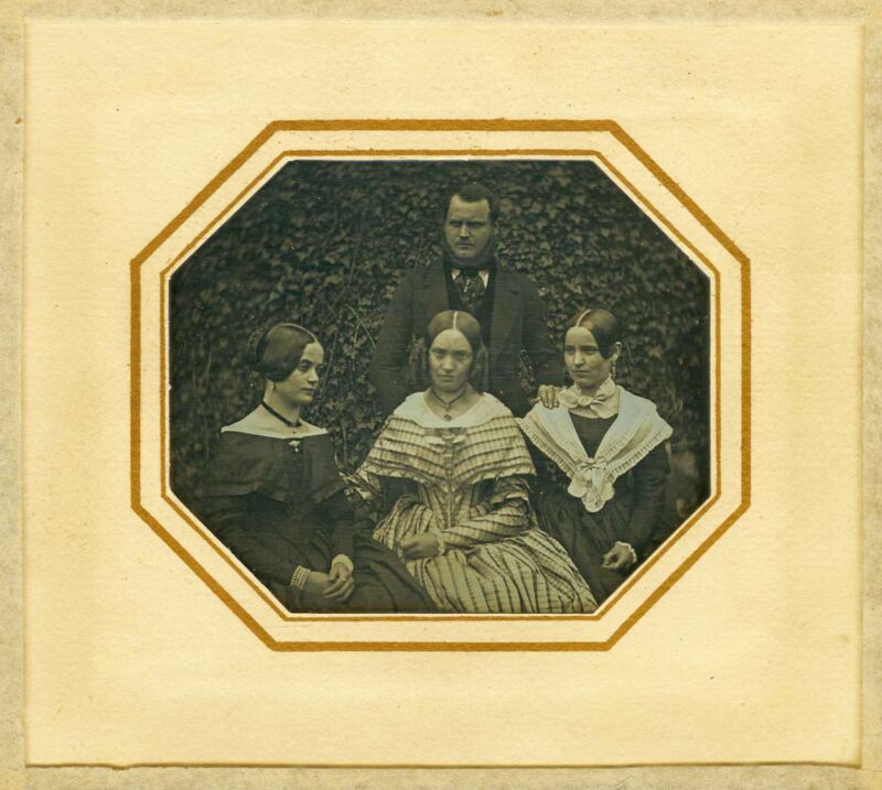 Hinweise auf die Identitäten der Abgebildeten finden sich nicht an der Daguerreotypie. Es sind sicherlich Personen aus dem wohlhabenden Freundeskreis von Johann Wilhelm Debus, die er bei einem Besuch in Schönberg fotografierte.