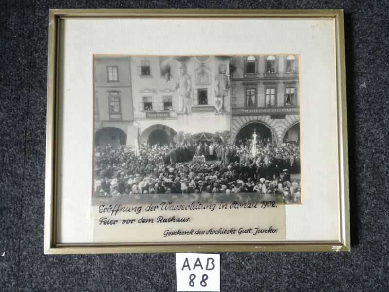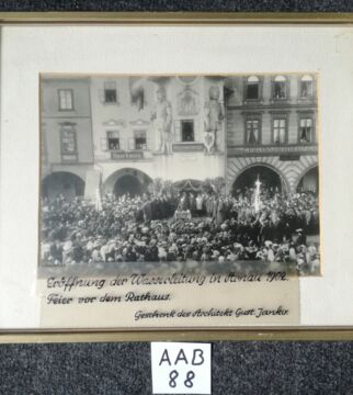 Arnaustube 26, handschriftlich bezeichnet: "Feier vor dem Rathaus. Geschenk des Architekt Gust. Janko."; siehe auch Album 3 W=857, Repro von Bosch Oktober 1972 ein Film von Bosch, gerahmt