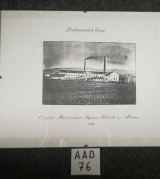 Fotographie SW - "Papier-Fabrik in Arnau" 1857