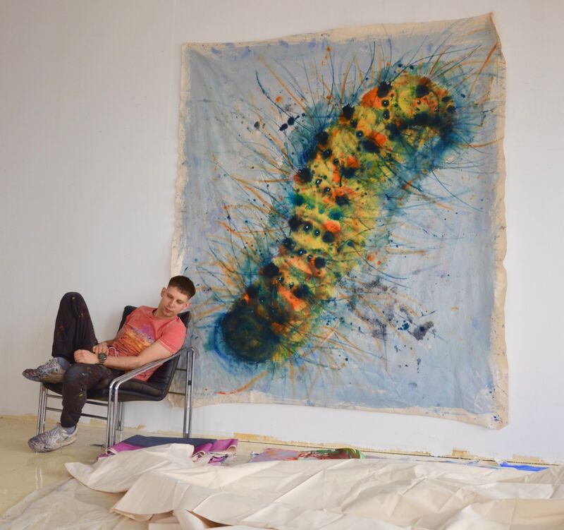 Andrej Dúbravský's exhibition title already gives a hint that the artist focuses entirely on the themes of diversity: Biodiversity, Cultural and Gender Diversity. Since his childhood, Dúbravský has been interested in nature, insects and the human body, and today he expresses this in his space-consuming, organically painted works.