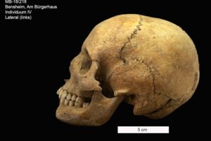 Das Individuum IV könnte sich durch den Zahnstatus in die Altersklasse Juvenil einordnen, jedoch lässt sich durch das junge Sterbealter keine morphologische Geschlechtsbestimmung durchführen. Neben dem Sterbealter konnten einige pathologische Veränderungen feststellen, so wie zwei Anatomische Varianten an den Schädelnähten.