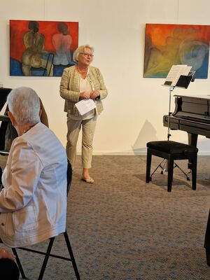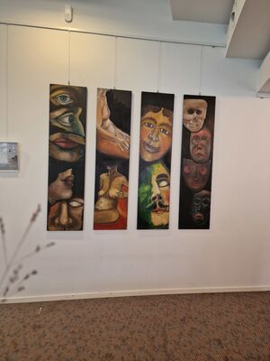 Die Ausstellung „Ein Blick zurück“ zeigt neben der Acrylmalerei, keramischen Werken und Skizzen auch einen Ausschnitt aus den Glasbilderzyklen des Künstlers. Diese Glasbilder sind ein wesentlicher Bestandteil des künstlerischen Schaffens von Dieter Bühring, mit denen sich der Künstler in das visuelle Gedächtnis der Region eingeschrieben hat. Aus mundgeblasenem, gefärbten Glas fertigte Bühring leuchtend farbige Bilder, in denen er sich religiösen oder mythologischen Themen aus der Antike oder aus anderen Kulturen annäherte.