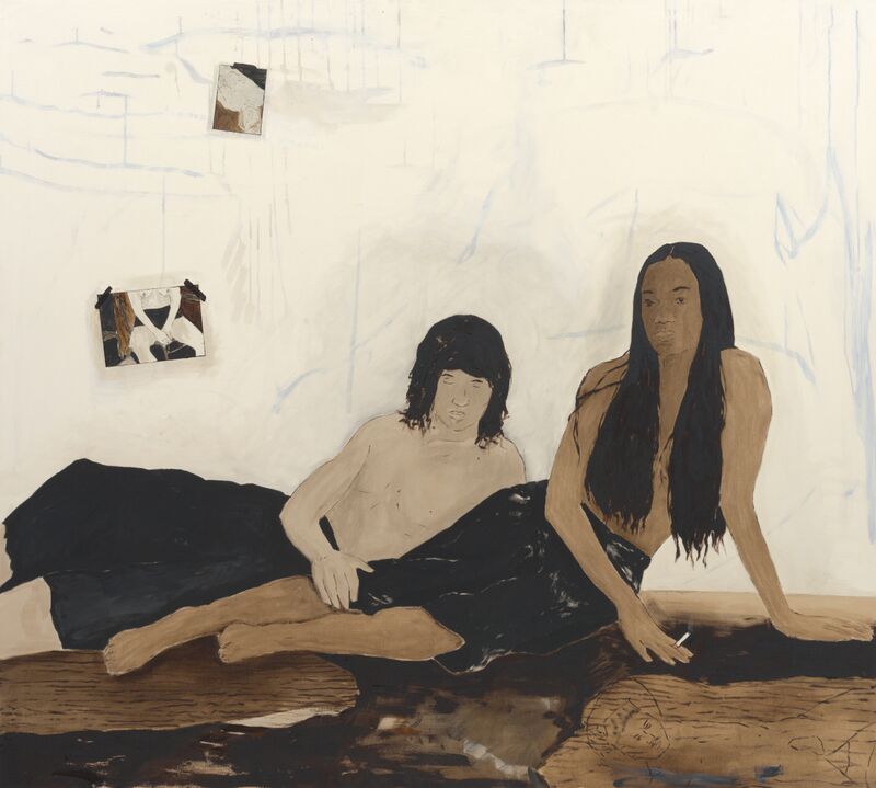 Abbildungsnachweis: MY BOYFRIEND AND HIS BEST FRIEND (WILLEM AND CHARITY), 2025 Bitumen und Wandfarbe auf Leinwand 200 × 180 cm Courtesy Galerie EIGEN + ART Leipzig/Berlin Foto: ©Georg Brückmann